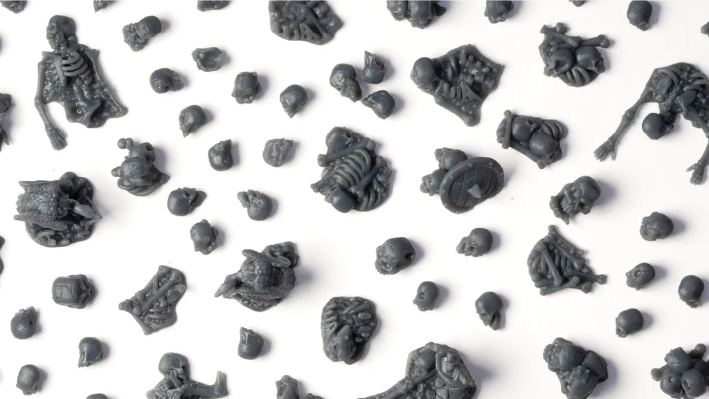The Skulls & Bones Basing Bits come in a complete sprue, 3D-printed in ultra high resolution, and highly detailed, these bits are made of hard resin and are specially designed to enable you to craft forgotten battlefields, chaotic realms, dark graveyards, or barbaric wastelands for your tabletop miniatures` bases and terrain.