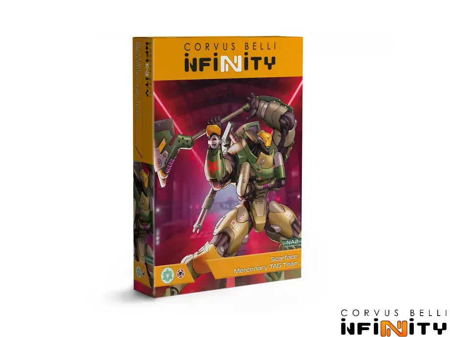 This box includes two plastic resin miniatures of NA2: one Scarface armed with an AP Spitfire and Panzerfaust, and one Cordelia Engineer. It's been a while since the first version of this team was shown at GenCon, but the wait for a re-sculpt is over and you can now get this new box. You have seen them as a pre-release at GenCon, now you can get the box of these mercenary siblings: a TAG and an Engineer for hire. An unbeatable combo!