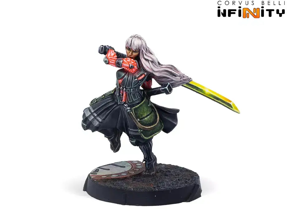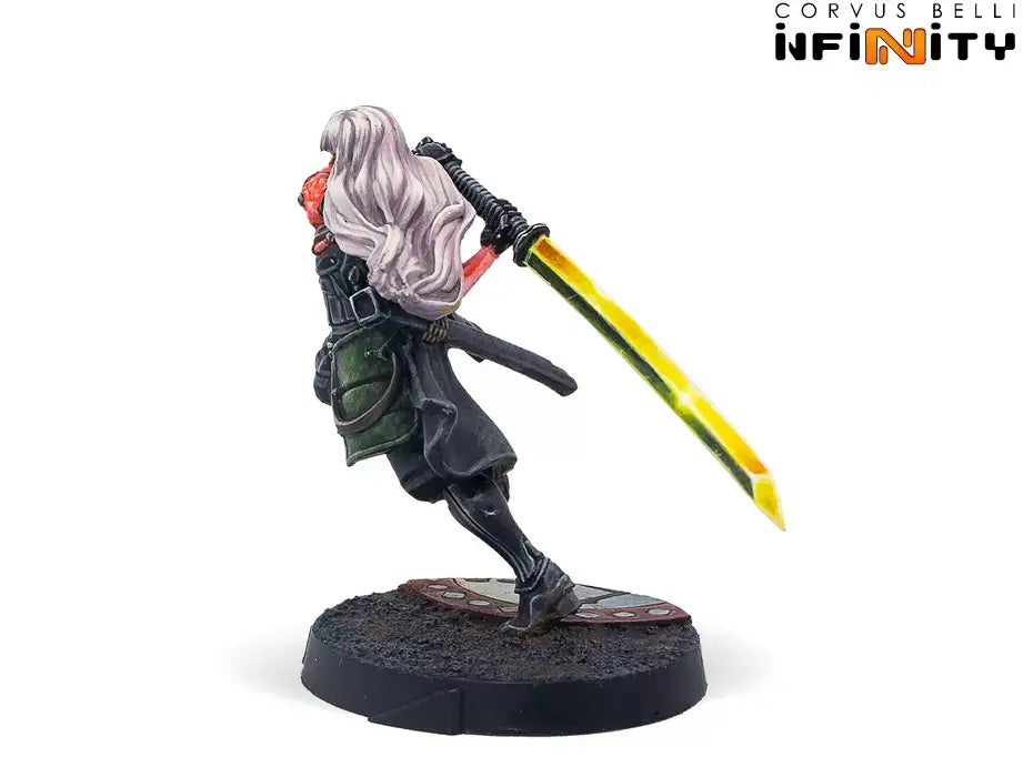 This mini-box includes one metal miniature of Shinobu Kitsune with two heads set. A gorgeous sculpt of a well-known JSA character. Shinobu Kitsune is a fearsome ninja master that can change the game for you.