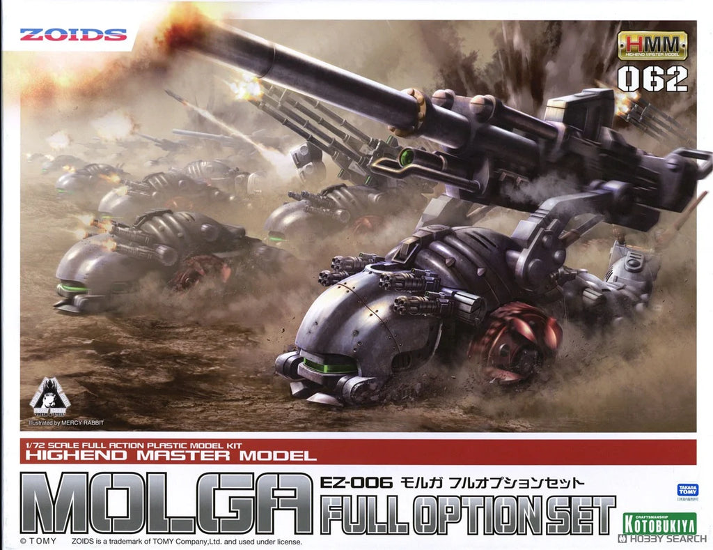Note that this kit includes parts for only one MOLGA model. Add this mass-produced Zoid supporting the Guylos Empire armored assault squads and transport squads to your lineup today!