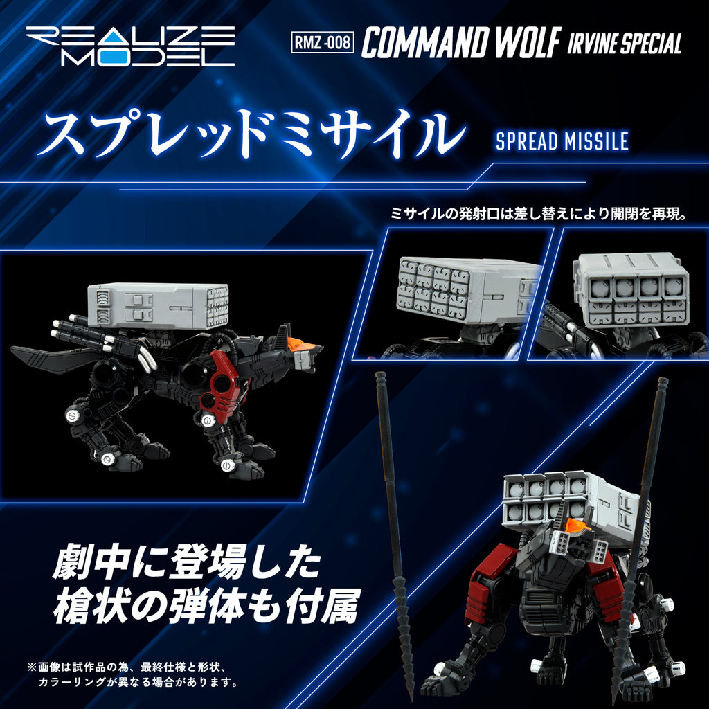 Welcome the Command Wolf Irvine Special into your collection! This 1/100 scale kit features extensive articulation for dynamic running and combat poses. A flexible waist and movable strike-claws allow for the recreation of scene-accurate action poses. Its long-range rifle, a signifier of the Irvine specification, mounts on the back. The Anti-Zoid 20mm cannon, spread missiles, and spear-shaped projectiles, as depicted in the TV anime, have been recreated in three dimensions for the first time. The Spread Missile can be shown as it looks both before and after launch by using interchangeable parts. The set also includes a spear-shaped projectile as an optional part. Opening the cockpit hatch reveals a seat for the included 1/100 Irvine pilot figure. In addition, a cover on the base of the long-range rifle at the back can be opened for pilot access. From sleek paneling to realistic joints, every detail of this ZOID is engineered to showcase the Command Wolf in lifelike motion.
