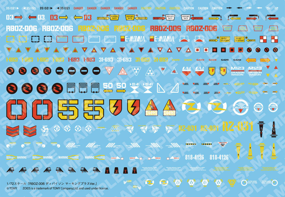 In addition to the original clear orange head cockpit, the kit also includes an additional clear part that can be customized with model paint (not included). The cockpit hatch on the head can be opened and closed, allowing for a pilot figure to be placed inside. The hatch of the 8-Shot Missile Pod on the head can be opened and closed. The Zoid Core inside the model’s torso can be removed. Each cannon on Dibison's signature 17-Shot Megalo Max Assault Cannons can be adjusted individually for optimal customization. This model also comes in an HMM-original cannon fort transformation mode. The clear parts of the head cockpit come in the standard clear orange as well as a clear color for your preference. All new emblem and caution mark decals to recreate the world of Zoids are included in this kit.