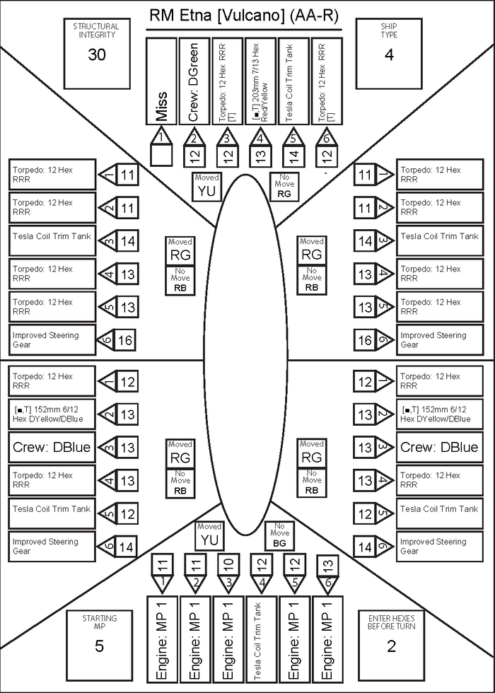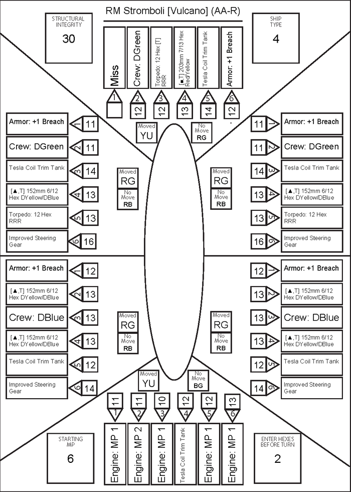 The Vulcano-class battleship miniature will come fully assembled and painted. Each will have a stand, tokens, and two Ship Cards: Etna and Stromboli.