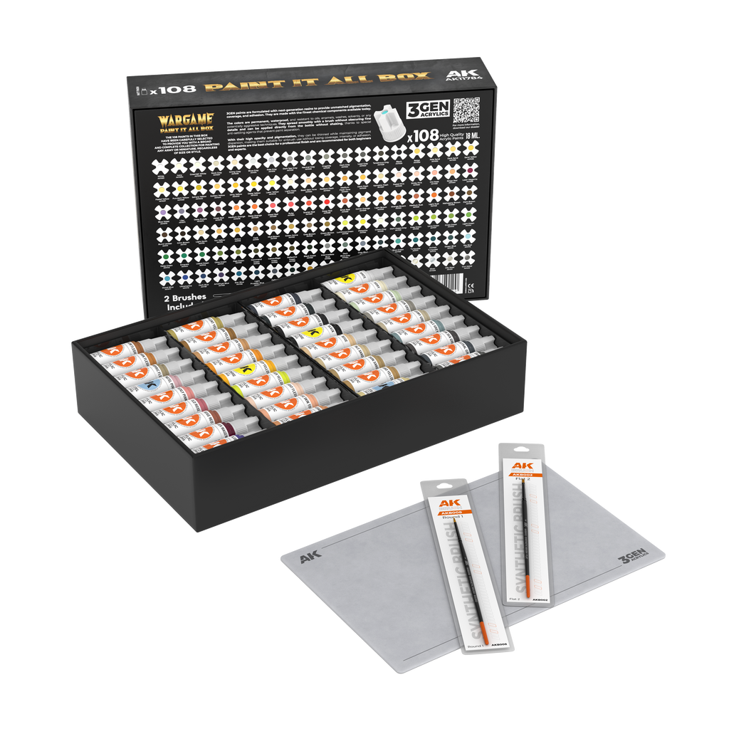 With this set of 108 paints for Wargames, you will have a selection of 3GEN colors to paint your armies and terrains.