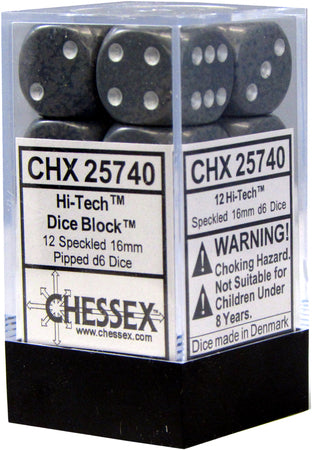 Description:    Speckled dice are made of a particularly dense material for a better feel when rolling. This material also allows for flatter faces and sharper edges. These dice have been a popular color range for the past decade. This set of 12 16mm D6's will dominate the table!