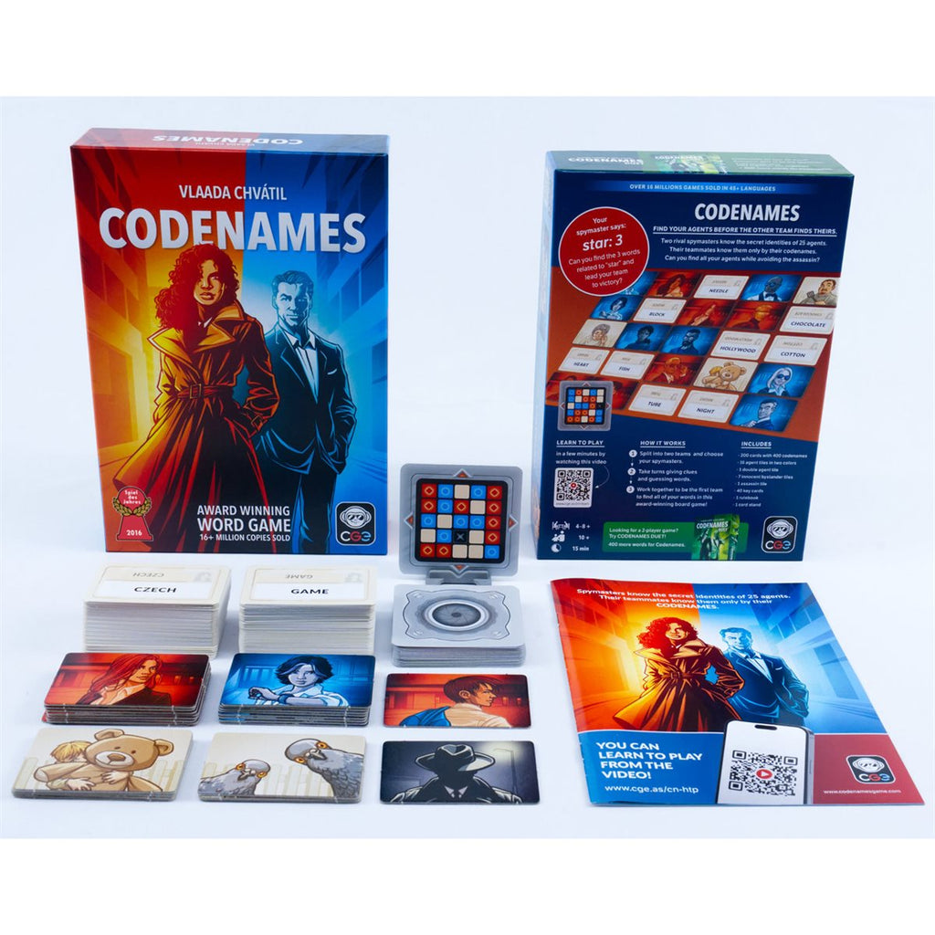 Two rival spymasters know the secret identities of 25 agents. Their teammates know the agents only by their codenames — single-word labels like "disease", "Germany", and "carrot". Yes, carrot. It's a legitimate codename. Each spymaster wants their team to identify their agents first...without uncovering the assassin by mistake.