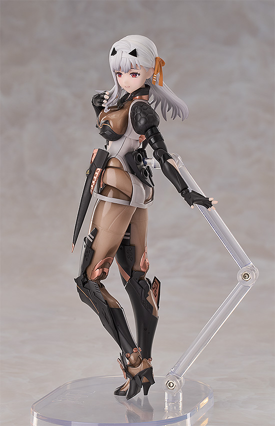 From the popular smartphone game "GODDESS OF VICTORY: NIKKE" comes a Hyper Body figure of Modernia! Face plates include a smiling face, a joyful face, a serious face and a sad face. The figure also comes with her back equipment arm, combat goggles and an interchangeable skirt part for attack poses. The arm on the back arm can be freely rotated. The waist part is made with soft PVC materials, allowing for a full range of motion perfect for creating attack poses from the game. Be sure to add the cute and cool Modernia to your collection!